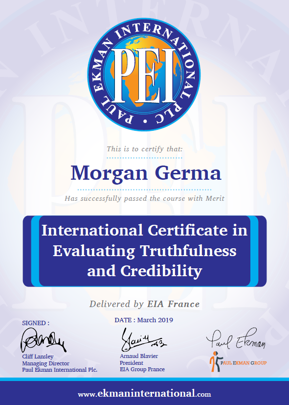 - Evaluating Truthfuness And Credibility (ETAC) chez Paul Ekman International (PEI),