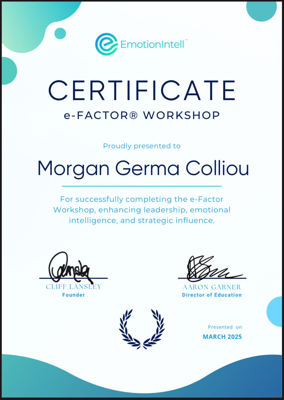 C'est en 2019 que je décide de me former à l'intelligence émotionnelle chez Emotional Intelligence Academy (EIA group), organisme reconnu internationalement, chez Paul Ekman Group, pionnier dans la recherche des émotions avec plus de 50 années de recherche scientifique, conseiller scientifique du film Vice Versa et de la serie Lie to me, ainsi que chez Rea-Active en PNL.